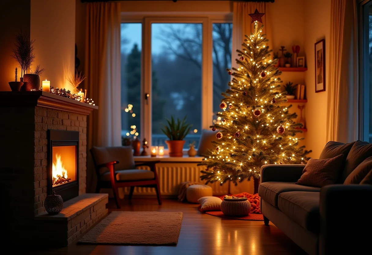 Combine luzinhas de LED com velas e luminárias para criar um ambiente acolhedor e festivo.
