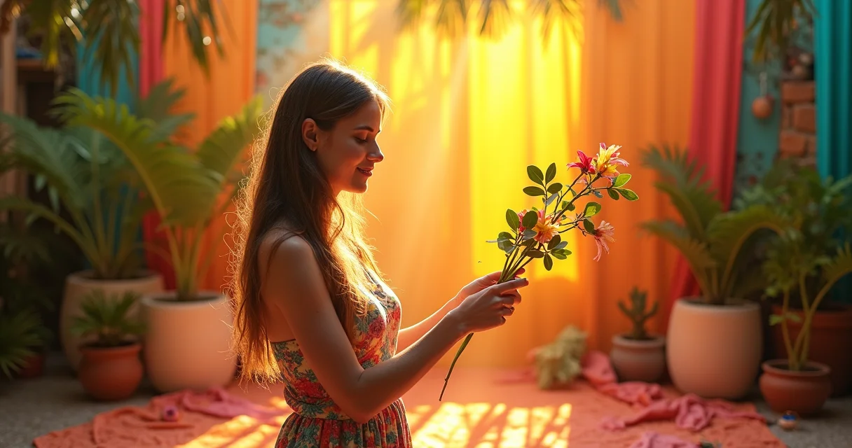 Um cenário não é só fundo e luz, é também sobre contar uma história. Os elementos decorativos são seus aliados para isso. Flores, sejam elas naturais ou secas, trazem vida e cor. Livros podem dar um toque intelectual ou aconchegante. Tecidos dobrados de forma criativa adicionam textura e profundidade. Pense em objetos que dialoguem com o tema principal da sua foto. Se for um ensaio romântico, talvez pétalas de rosa e velas. Se for um produto de decoração, use outros itens de decoração que combinem com ele.