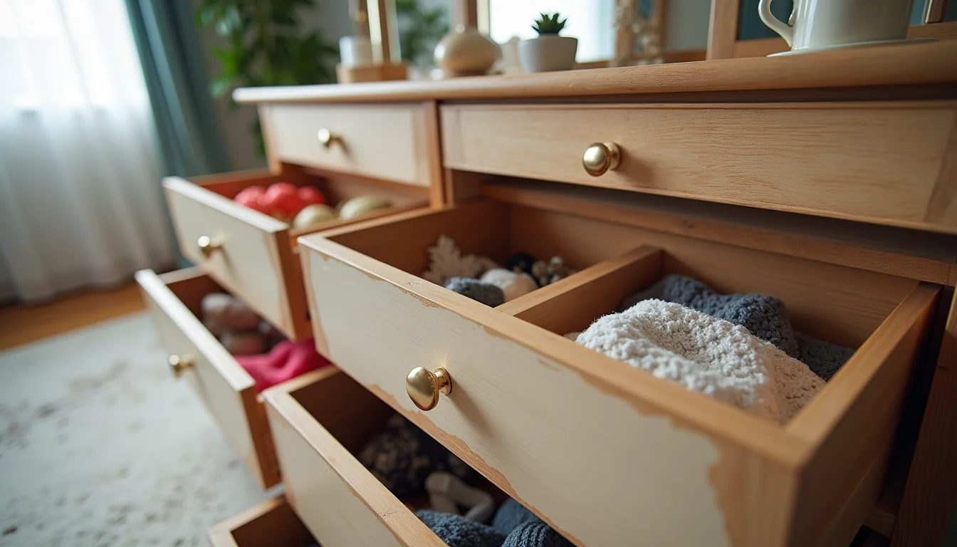 O Desastre: Comprar uma cômoda linda, mas com poucas ou gavetas muito rasas, é um convite à desordem. Se você tem muitas roupas dobradas, documentos ou acessórios, uma cômoda mal planejada só vai piorar a situação.