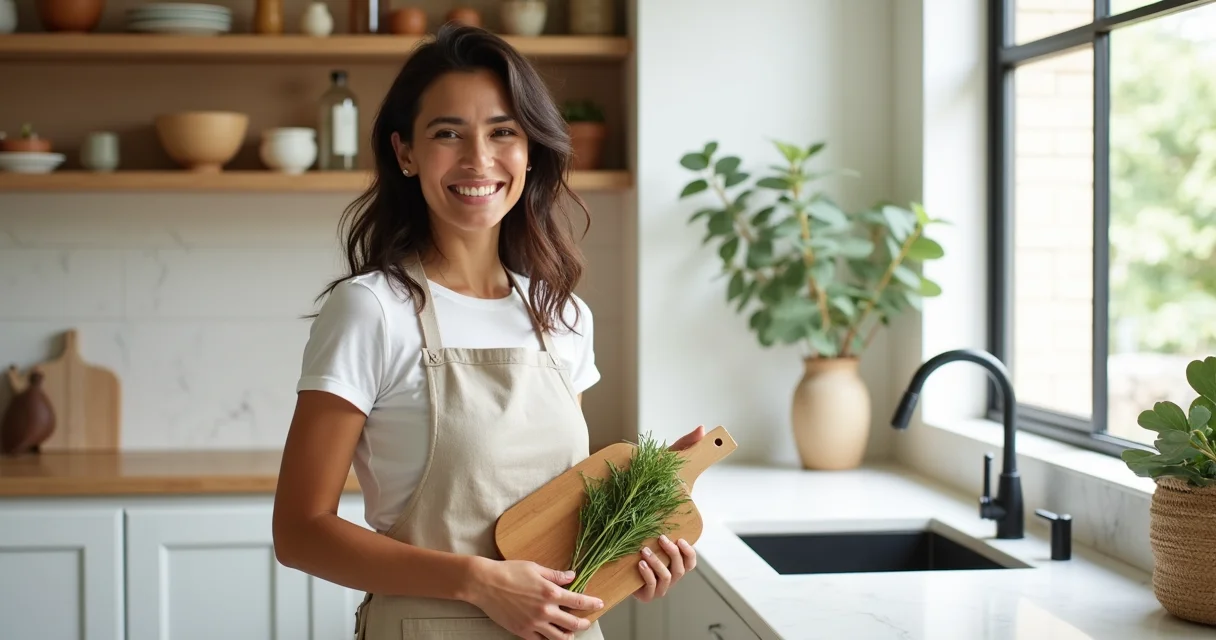 Adicione texturas e pontos de cor. O branco liso dos armários pede contraste com madeira em estado mais natural (com veios e nós aparentes). Inclua um tapete de fibra natural, panelas de barro à vista ou uma cadeira com estofado em tecido cru. Esses elementos quebram a frieza e trazem humanidade para o ambiente, seguindo o princípio do ‘wabi-sabi’ que aceita imperfeições.