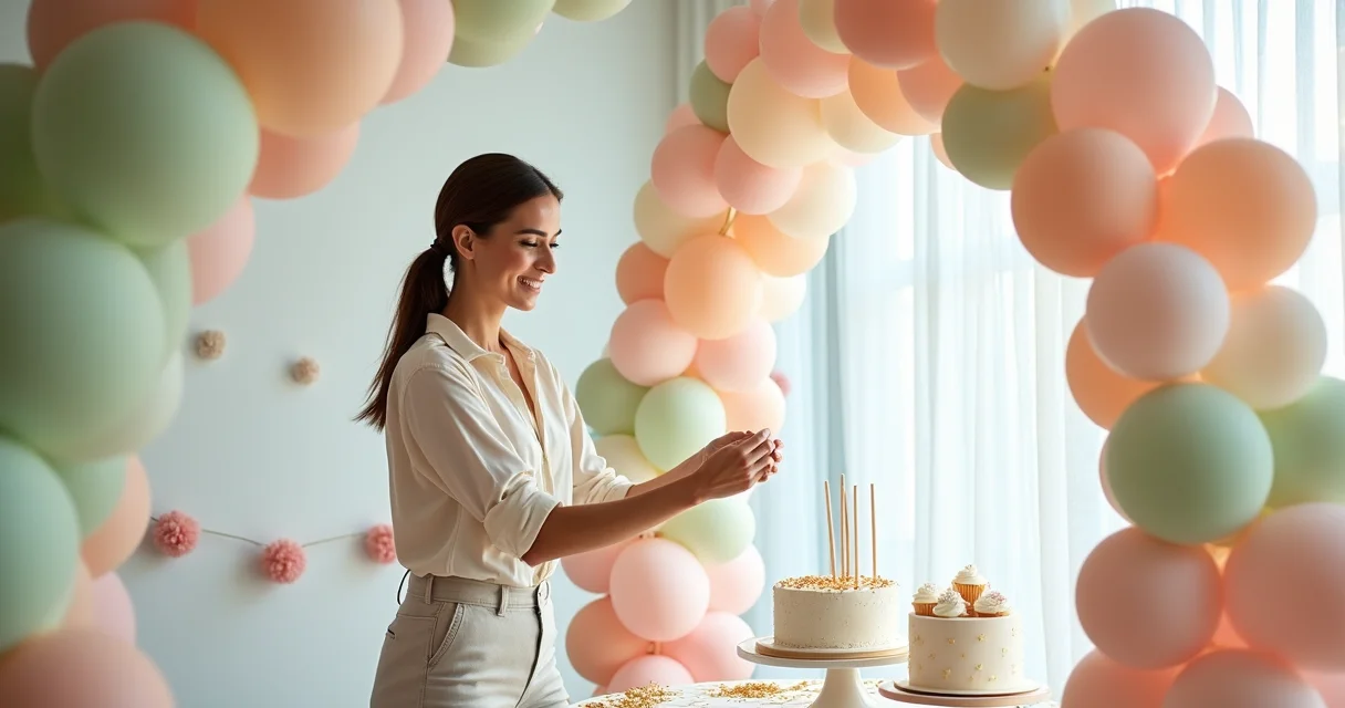 - Arcos de Balões Orgânicos: Misture tamanhos e cores, criando um movimento fluido e moderno.