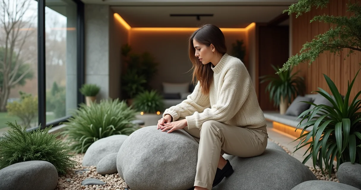 Cantinho Zen com Seixos e Luz Suave
