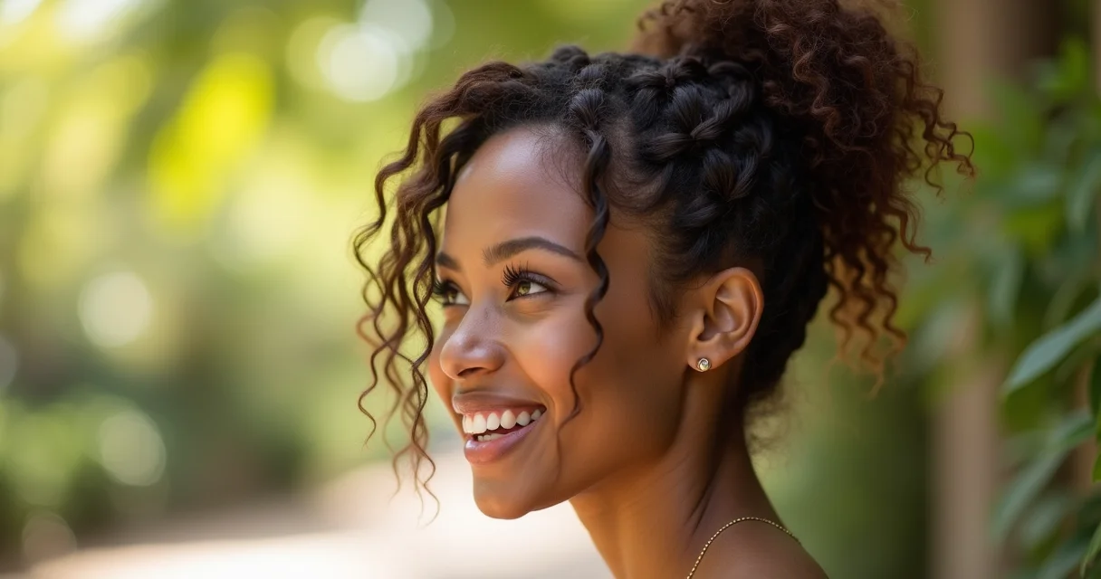 Em Destaque: O Coque Desconstruído é uma forte tendência de penteado para cabelos cacheados em 2025, valorizando um visual despojado e natural. Para a fixação, produtos como spray fixador leve ou cera são recomendados para durabilidade.