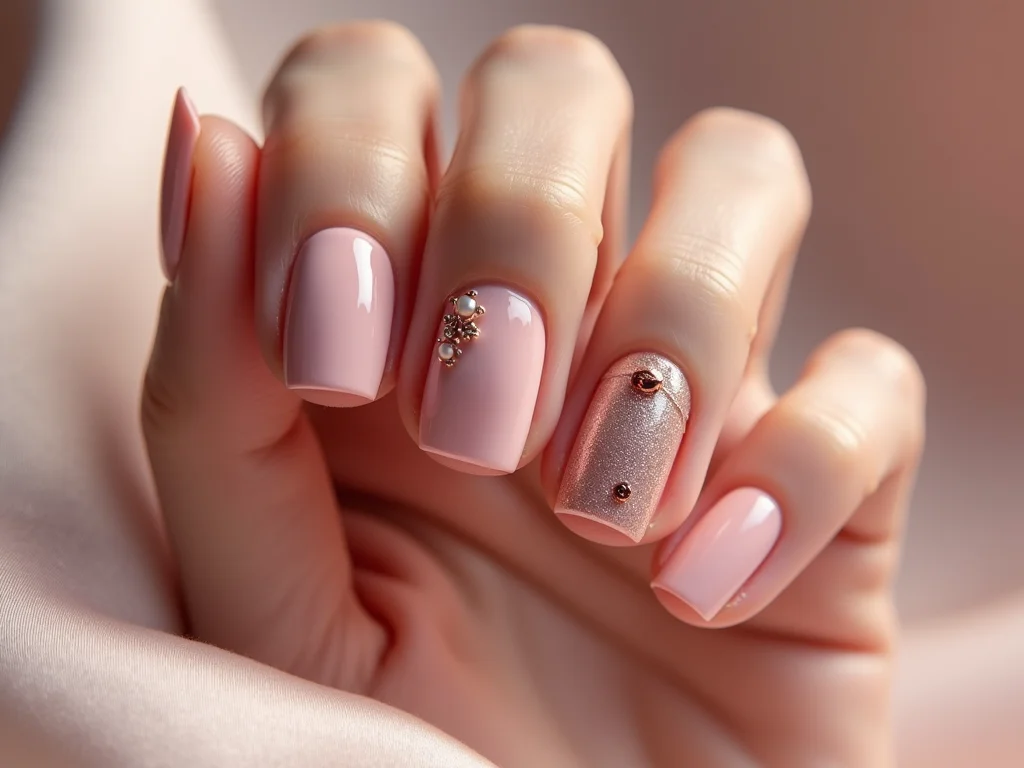 O rosa bebê é a personificação da delicadeza. Ao adicionar pedrarias, você eleva o visual a outro nível. Aplique pequenas pedras ou cristais em uma ou duas unhas. O resultado é um look romântico e cheio de brilho, perfeito para eventos mais formais.